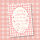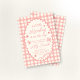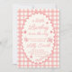En rosa gingham scalloped kant ram för en liten kärleksbug tema baby shower inbjudan.