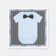 Små manliga baby dusch servetter med babyblå skjorta och svart fluga på en svart och grå randig bakgrund. Du kan anpassa dessa söta baby shower servetter genom att helt enkelt lägga till text i den typsnittsstil och färg du väljer.