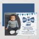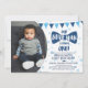 Denna lilla man blå fluga foto inbjudan har nyanser av blått med en mustasch och fluga! Denna inbjudan är perfekt för en liten mans födelsedagsfest med tema!