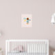 Söt väggkonst för barnkammare eller litet flickrum med akvarellillustration av brunhudad/brunhårig älva i blå klänning med "Liten men eldig"-citat på blekrosa bakgrund