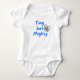 Denna söta och roliga bodysuit har modern typografi "Liten men mäktig" i blått. Perfekt som present till spädbarn, nyfödd eller baby shower.