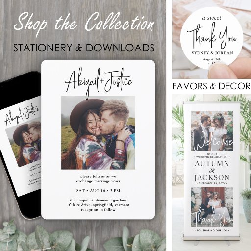 Liten Minimalistisk Script Allt-i-ett QR Foto Bröl Inbjudningar