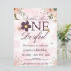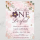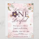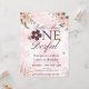 rosa blomminbjudan till party på första födelsedag.