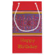 Snyggt modern tryckt liten papper presentväska i grattis på födelsedagen, det breda rand kan växlas till vilket färg som helst och grattis på födelsedagen kan ändras till kostym vid varje särskilt tillfälle. All inslag kan tas bort på den här designern av plommon, klämmor och senap guld.