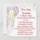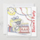 Denna lilla mus är redo för fest med tårta och presenter redo. Med lätt anpassningsbar text är detta en bra inbjudan till baby shower eller födelsedagsfester. med framsides- och baksidesdesign.