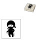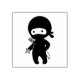 Söt serie-ninja iklädd svart dräkt håller en kaststjärna. Traditionell japansk svärd katana kan ses fäst över hans axel.
