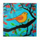 Keramiskt plattor i en Art nouveau inspirerad illustration av en liten orange och en brant fågel i gren, med blomknoppar av korall orange, mot en mjuk, texturerad bakgrund