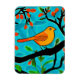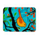 Magnet i en Art nouveau inspirerad illustration av en liten orange och en brant fågel i gren, med blomknoppar av korall orange, mot en mjuk, texturerad bakgrund av turkos