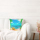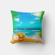 Ge en tropisk atmosfär till alla rum i ditt hem eller kontor. med denna färgglada dekorativa kastkudde. Den har en tropisk scen med strand, gröna palmblad, en sjöstjärna och kokosnötter. Denna kudde kommer verkligen att pigga upp alla utrymmen!