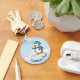 En liten pingvin-teckning som viftar framför en snöbollstack. Anpassad text på båda sidor.
