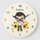 Liten pojke med solblommor stor klocka