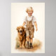 Vintage akvarell med en pojke och hans hund. Idealisk present för hundälskare, vuxna & barn, män, kvinnor, pojkar & flickor . Perfekt för ett barns sovrum eller barnkammare