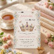 Fira ankomsten av en liten prinsessa med denna eleganta babybjudan som har en lyxig juvelbesatt krona, mjuka vattenfärgade blommor och ömtåliga fjärilar. Den romantiska pastellfärgspaletten och det kungliga temat gör denna inbjudan perfekt för en magisk bebisflicka-fest.