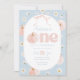 En söt pumpa! Blommig pumpa och slinga Tematiserad flickas 1-års födelsedagsinbjudan med blå och rosa bakgrund med tusenskönor, pumpa och söt rosa slinga.