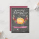 Falla för dessa rustika och eleganta födelsedagsinbjudningar till barn. Designen har en orange akvarellpumpa prydd med burgunderröda, rosa och orangea blommor och grön lövverk på en rustik svart tavla-bakgrund. "Vår lilla pumpa fyller år" visas högst upp i elegant kalligrafiskrift, med ditt barns ålder ingraverad på pumpen. Exemplet visas för en ettårsdag. Anpassa med dina födelsedagsdetaljer nedan i vit text. Baksidan på korten är i enfärgat burgunderröd marsalafärg.
