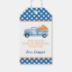Liten pumpa blå lastbil kariert första födelsedag presentetikett