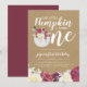 Förälskliga höstinspirerade inbjudningar till din lilla enes födelsedag har en nedre kant av burgunderfärgade akvarellblommor och boho-blommor på en kraftbakgrund. "Vår lilla pumpa fyller ett" står högst upp med en vit pumpa dekorerad med blommor som ersätter "o". En söt och rustik design för vackra höstfödelsedagsfiranden.