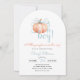 Denna eleganta och charmiga inbjudan till babyfirande har en vacker akvarellillustration av en pumpa med ett delikat blått band, perfekt för att fira den kommande ankomsten av en liten en under höstsäsongen.