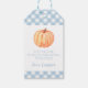 Liten pumpa pastellblå rutig första födelsedag presentetikett