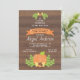 Denna söta könsneutrala baby shower inbjudan har en färgglad grafik av en pumpa på en rustic trähundgrund.