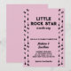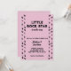 Gör dig redo för rock och rull med vår kantiga Rock and Roll Baby Girl Shower-inbjudan! Med en snygg svart och babyrosa design visar denna inbjudan silhuetter av elgitarrer, blixtar, flaskor och små babystövlar, vilket skapar en perfekt harmoni mellan musik och babyglädje. Meddela att en "Liten Rockstjärna är på väg" med denna trendiga inbjudan, perfekt för föräldrar som älskar att leva på gränsen. Denna stilfulla inbjudan sätter scenen för en oförglömlig fest, som genomsyras av personlighet och kul. Perfekt för en musiktematisk baby shower, kommer den att få gästerna att bli upphetsade över den senaste medlemmen i ditt rockband. Omfamna rock and roll-andan och gör dig redo att välkomna din