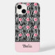 Den här blommigten har en liten rosa och grått ro på en zebraliknande svartvit rosa för ett utseende som blandar vintage romantik med en något vildare contemporary. Ditt namn eller initialer visas i svart på ett färgblock med rosa grund i designen. Skriv texten som du vill ha under Anpassa.