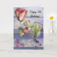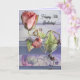 Liten rosa rosbukett & lila vikbar födelsedagskort kort