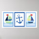 Liten segelbåt uppsättning av 3 konsttryck poster