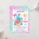 Pigig rosa, turkos och vit Little Mermaid under havet födelsedagsinbjudan. Lägg enkelt namnet på födelsedagsflickan och datum, tid och adress till födelsedagsfesten.