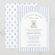 Liten sjöman Baby Shower-inbjudan | Klassisk kustblå rand vattenfärg björn - Fira den kommande ankomsten av ditt lilla ett med tidlös kustcharm. Denna lilla sjöman baby shower-inbjudan har mjuka blå vattenfärgsränder, en söt sjömanbjörnillustration och klassisk typografi för ett utseende som känns både elegant och hjärtvärmande.