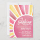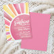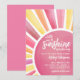 Fira den kommande ankomsten med denna djärva och glada sol-tema baby shower-inbjudan. En stor rosa sol fyller designen, med strålar som sträcker sig runt vänster och övre kanterna för en strålande, iögonfallande look. Eventuminformationen är centrerad inom solen i krispiga vita typsnitt, som blandar modern handskrift och klassiska stilar för en ren, balanserad känsla.