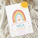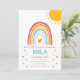 Fira din lilla solstråle med denna ljusa och glada födelsedagsinbjudan! Med en lekfull regnbåge och soldesign i varma, glada färger är denna inbjudan perfekt för en solig födelsedagsfest. Idealiskt för första födelsedagar och mer därtill, sätter den tonen för en glädjefylld och kärleksfull firande. Anpassa med ditt barns detaljer för att skapa en unik inbjudan som dina gäster kommer att älska.