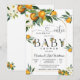 Fira ankomsten av en lille sötnos med denna charmiga citrusinspirerade baby shower-inbjudan. Med akvarell-apelsiner, blommor och frodig grönska är denna eleganta design perfekt för sommarfiranden och könsneutrala fester. Det fräscha fruktmotivet ger en glad touch, medan den moderna typografin håller det stilrent och lätt att läsa. Anpassa med dina detaljer för att skapa en minnesvärd souvenir för gäster och blivande föräldrar.