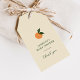 Lägg till en söt avslutande touch till era barnkalasfavoriter med dessa bedårande favorittaggar med en glad "Liten söt på väg"-design. Det livfulla orange citrus-temat är perfekt för en solig sommarsemester. Personifiera varje tagg med barnets namn, kalasdatum eller valfritt anpassat meddelande för att göra era kalasdetaljer extra speciella och minnesvärda.