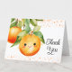 Liten söt orange baby shower tack-kort med söt liten ansikte på en orange bokeh-bakgrund. Du kan ändra texten efter behov på dessa söta lilla cutie baby shower tack-kort. Du kan lägga till ditt meddelande på insidan eller lämna det tomt för din handskrivna hälsning.