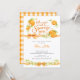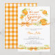 Denna Liten sötis baby shower-inbjudan har akvarell apelsiner, mjuka blommor och gula ginghamsnören i en söt citrusinspirerad design. Perfekt för en apelsin baby shower, citrus baby shower, Vi väntar bara på att krama dig baby shower, sommar baby shower eller könsneutral baby shower. Denna frukt baby shower-inbjudan har en glad, fräsch och elegant look som är perfekt för en stilig liten sötis-firande.