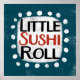 En söt typografisk matdesign som säger "Liten Sushi-rulle". Det är svart och röd text på en vit rektangel med roliga, lekfulla vita prickar runt omkring, allt på en teal bakgrund.
