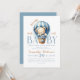Få din babyfest att sticka ut med vår charmiga design med blå varmluftsballong och teddybjörn. Denna förtjusande illustration av en teddybjörn i en blå varmluftsballong ger en lekfull touch till din fest. De milda blå nyanserna förmedlar vackert förväntan och glädje inför den nya lilla bebisen. Personalisera med barnets namn, datum för babyfesten eller ett speciellt meddelande för att skapa en unik och minnesvärd souvenir. Lägg till en personlig touch på din babyfest med denna förtjusande design. Beställ nu och fira din lilla enes ankomst i stil!