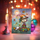 Liten vandrare Halloween-häxa med vit katt Tack Kort