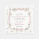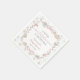 Denna eleganta servett för baby shower "Little Wildflower" har ett romantiskt vintageblommigt mönster med mjuka rosa rosetter, diskreta blåa bandaccent och utsökta botaniska detaljer inspirerade av klassiska tapetdesigner. Den graciösa skrivstilen "baby" i kombination med klassisk serif-typografi skapar en tidlös, feminin estetik som omedelbart förhöjer dekorationen på ditt baby shower-bord.