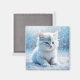Liten vit kattunge i snö jul magnet