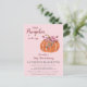 En söt vattenfärgspumpa med blommigtar för färgad hösten och en mjuk bakgrund för rosa kompletterar den här söta inbjudan till Baby Shower Baby Shower. Anpassa all information om babyduschen med bekvämlighet. Skicka det här vykortet för babyduschinbjudan för kostnadsbesparing och bekvämlighet. Perfekt för en falldusch för en flicka.