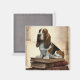 En litterär basset hound sitter på högen av böcker han en dag ska läsa.