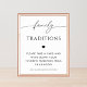 Uppmuntra dina gäster att sina favoritfamiljetraditioner med det här poster tecknet, med modernt skript, hjärta och redigerbar text. Anpassa den enkelt genom att klicka på alternativet "anpassa".