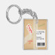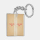 Den här nyckelkedjan liknar en korrugerad miniatyrkartong som är täckt av band och skyltar som läser "FRAGILE Handle With Care" och "Ta inte bort". Leveransetiketten kan anpassas med din egen text för att säga vad som helst från "I Kärlek You" till "Ha en trevlig dag" eller befordra ditt varumärke eller företag. En dekorativ streckkod på skeppningsetiketten är en realistisk detalj som kan ersättas med en QR-kod till en personlig webbplats eller affärswebbplats.