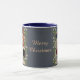 Jul mugg visar en ängel som tittar i ett fönster vid jul Kväll med lite hjort bredvid henne. Hjorten bär hela presenter för barnen. Det är en underbar jul mugg för barn i alla åldrar.