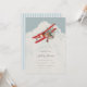 Få redot att ta flyget med den här vintagen, stil-barnduschinbjudan! Mot en ljusblå bakgrund skjuter ett ynkligt litet rött flygplan över molnen. Med sitt charmerande handdragna stil är det här lilla flygplanet säkert att fånga era gästers hjärtan och ange tonen för en roligt och äventyrlig babydusch. Färg-schemat är mjukt och vismiskt, med blå, röd och gräddnyans som tillägg till konstruktionens övergripande karm. Med sin lekande illustration och vintage-inspirerade design är den här inbjudan till babyduschen säkert till att belysa dina gäster och få dem redo att ta sig av. Så ta redot för att fira din lilla annons i stil!