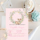 Cute baby dear with flowers on a pink background. These baby shower invitations are easily customized for your event by simply adding your details.