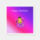 En söt design med en söt liten humla som håller blommor i lila. En skuggad bakgrund i nyp och lila. Ord "grattis på födelsedagen" kan ändras eller tas bort för att anpassas.