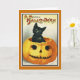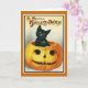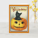Ett underbart vintage Halloween-kort med en söt, liten svart katt sitta i en jack eller "lantern". Försiktigt återställd och injicerad ram.